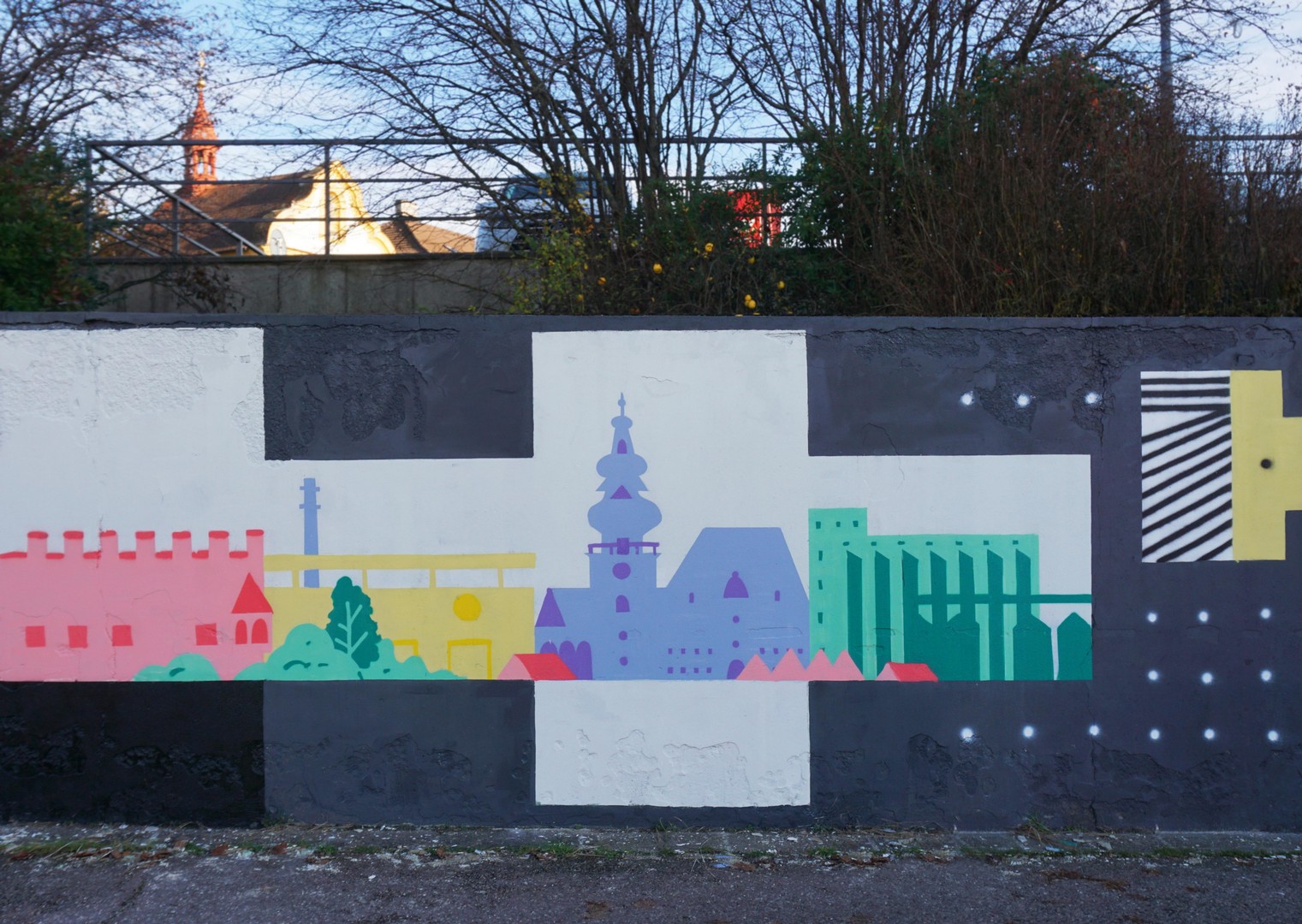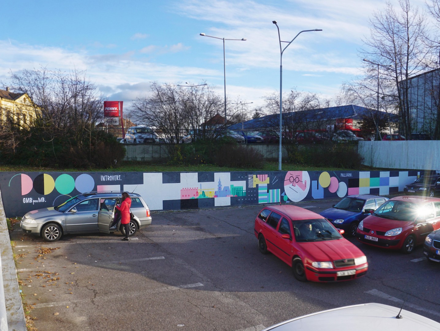 rámci jsme nechali zkrášlit oprýskanou zeď u supermarketu Billa v Moravských