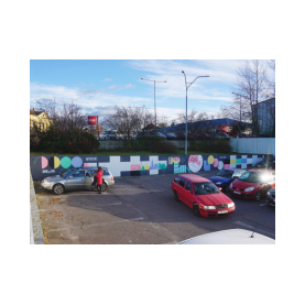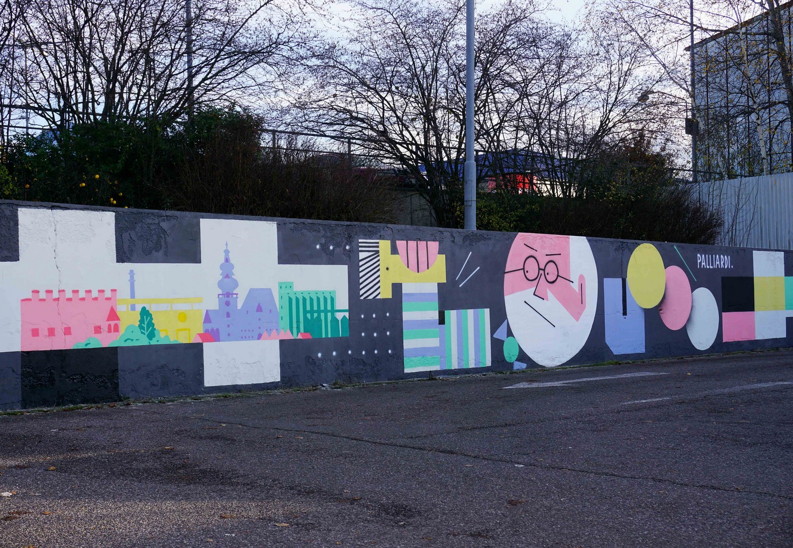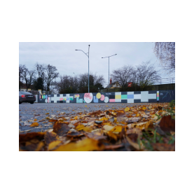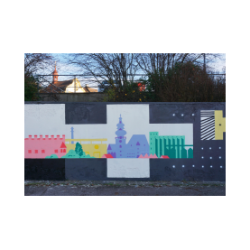 rámci jsme nechali zkrášlit oprýskanou zeď u supermarketu Billa v Moravských